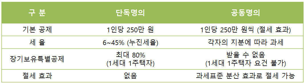 • 다주택자의 경우 공동명의가 유리할 수 있음 (중과세 방지).