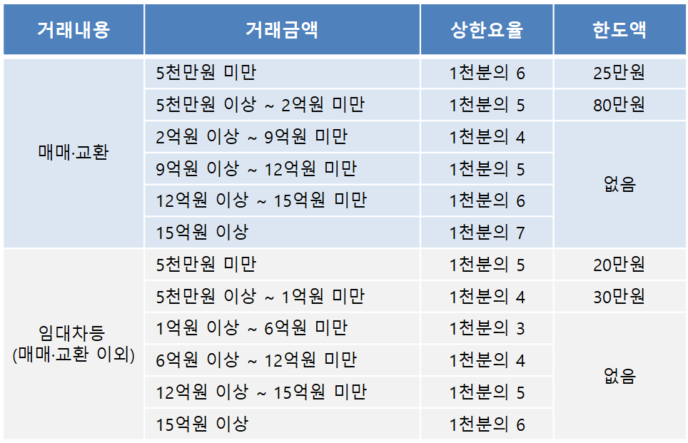- 중개보수의 부가가치세 10%는 별도이며, 정해진 한도를 초과하여 중개수수료를 받을 수 없습니다.